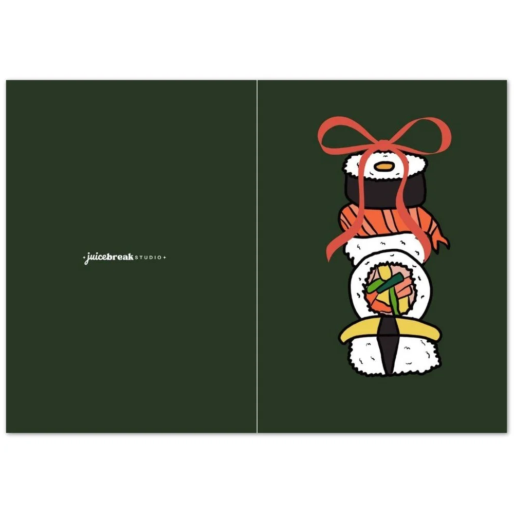 Shop Categories: All calendar prints cards DTF transfer stickers All | calendar | prints | cards | DTF transfer | stickers | sushi, rice & everything nice DTF shirt transfer (color edition) $10.00 add to cart Added! sushi, rice & everything nice DTF shirt transfer $10.00 add to cart Added! sushi sticker sheet (10 stickers) $10.00 add to cart Added! sushi stack DTF shirt transfer $10.00 add to cart Added! 2026 sushi assortment calendar (8.5x11) $25.00 Add To Cart Added! [green] sushi stack holiday card set (pack of 10) $15.00 Add To Cart Added! sushi stack art print (12x16) $30.00 Add To Cart Added! [red] sushi stack holiday card set (pack of 10) $15.00 Add To Cart Added! [blue] sushi stack holiday card set (pack of 10) $15.00 Add To Cart Added! take a juicebreak <3 take a juicebreak <3 take a juicebreak <3